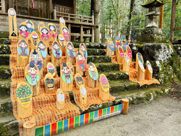 名栗地域の神社(下名栗諏訪神社・星宮神社・八坂神社)にて展示されている丸太雛