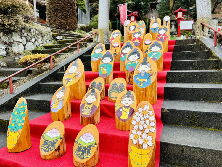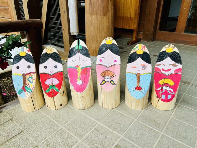 さわらびの湯がある名栗地区では、2月23日(日)から3月30日(日)まで“丸太雛めぐりinなぐり”が開催され、名栗地区各所で丸太に描かれたお雛様が展示されます。さわらびの湯でも雛飾りおよびこの度お客様に描いていただいた丸太雛を展示いたします!