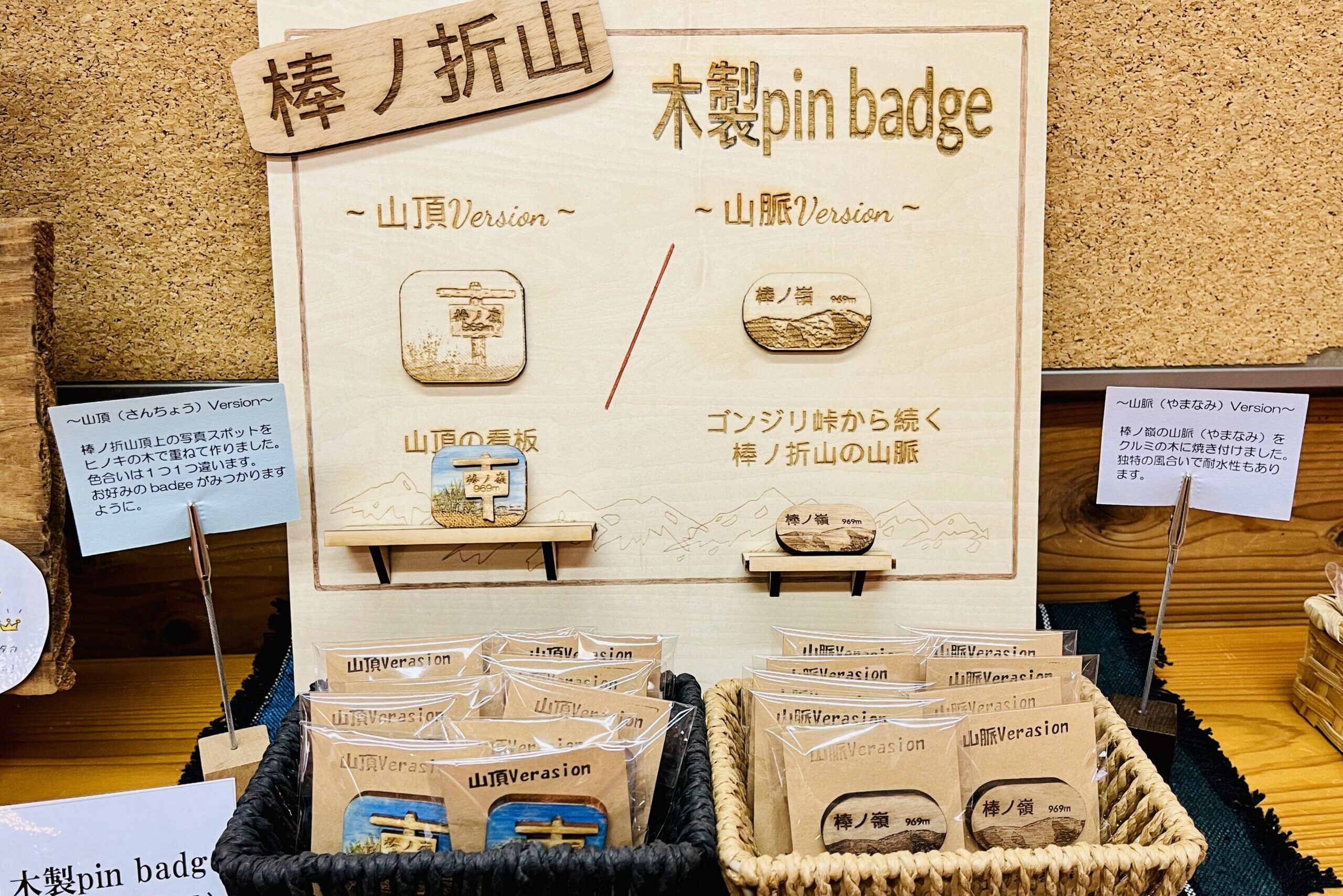 棒ノ嶺登山の後、温泉でゆっくりした方々には、棒ノ嶺の思い出となるピンバッチや記念メダル、キーホルダーをご用意しております。